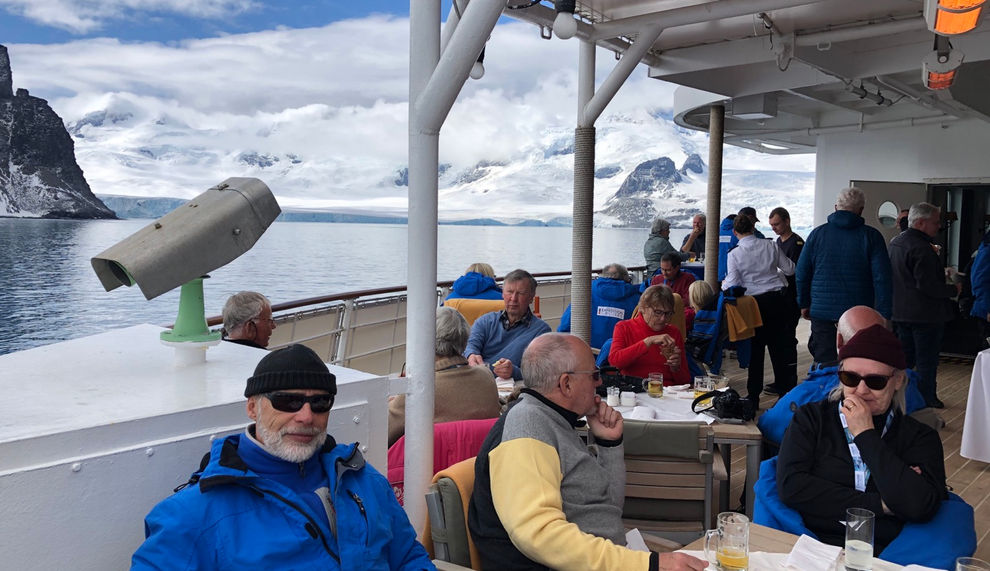 Täglich werden wir in der Panorama-Lodge vom hochkarätigen Expertenteam bestens über die anstehenden Expeditionen informiert. Wir erfahren alles über Flora und Fauna, über die Geologie der Antarktis und der vorgelagerten Inselgruppen, über Vulkane, das Leben auf den Forschungsstationen, die geschichtlichen Hintergründe bei der Entdeckung und natürlich alles über Pinguine. Hierbei lernen wir die deutschsprachigen Ausführungen zu schätzen, da fachspezifisches Wissen in fremden Sprachen für uns schon schwer verständlich wäre.